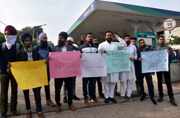 लुधियाना,(संजय मिका ,विशाल)-केंद्र के खेती कानूनों के खिलाफ लोगों का रोष बढ़ता जा रहा है। लुधियाना के दुगरी स्थित रिलायंस पेट्रोल पंप के बाहर युवाओं की ओर से धरना प्रदर्शन किया गया।प्रदर्शनकारियों का आरोप था कि कारपोरेट घरानों की शह पर मोदी सरकार किसान विरोधी क़ानून लेकर आई थी और जब तक इन कानूनों को वापिस नहीं लिया जाता उनका संघर्ष जारी रहेगा।